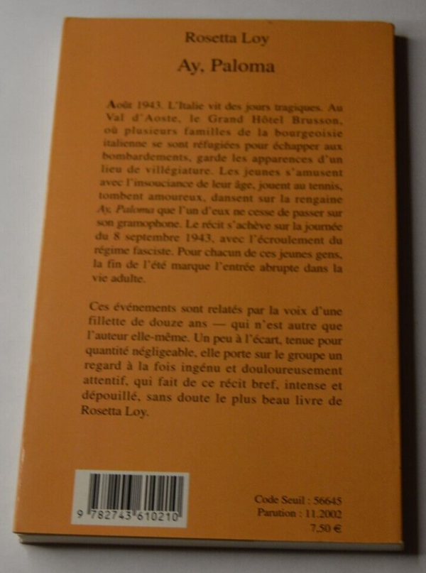 Titre : Ay, Paloma - Rosetta Loy - livre