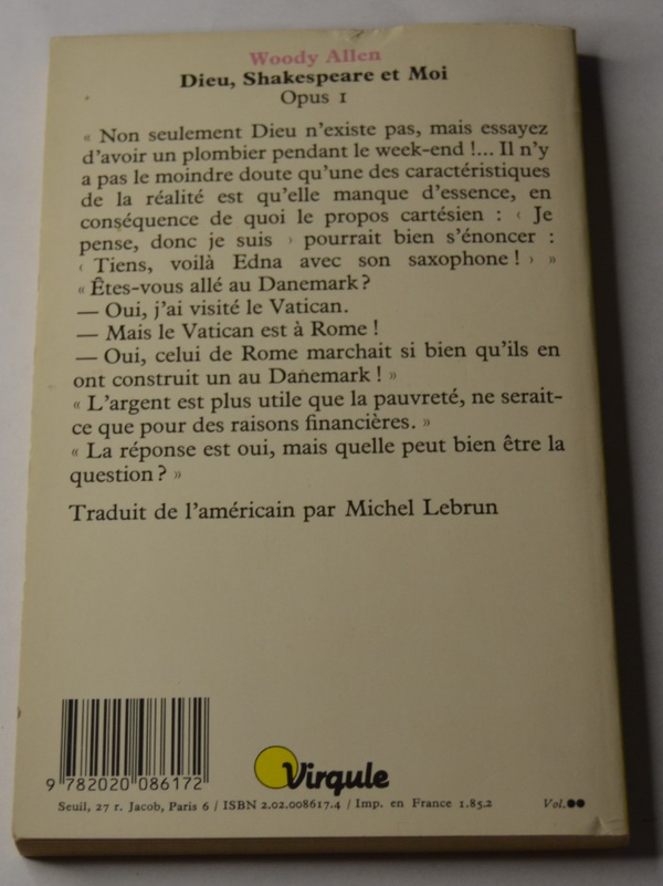 Titre : Dieu, Shakespeare et moi - Opus 1 - Woody Allen - livre