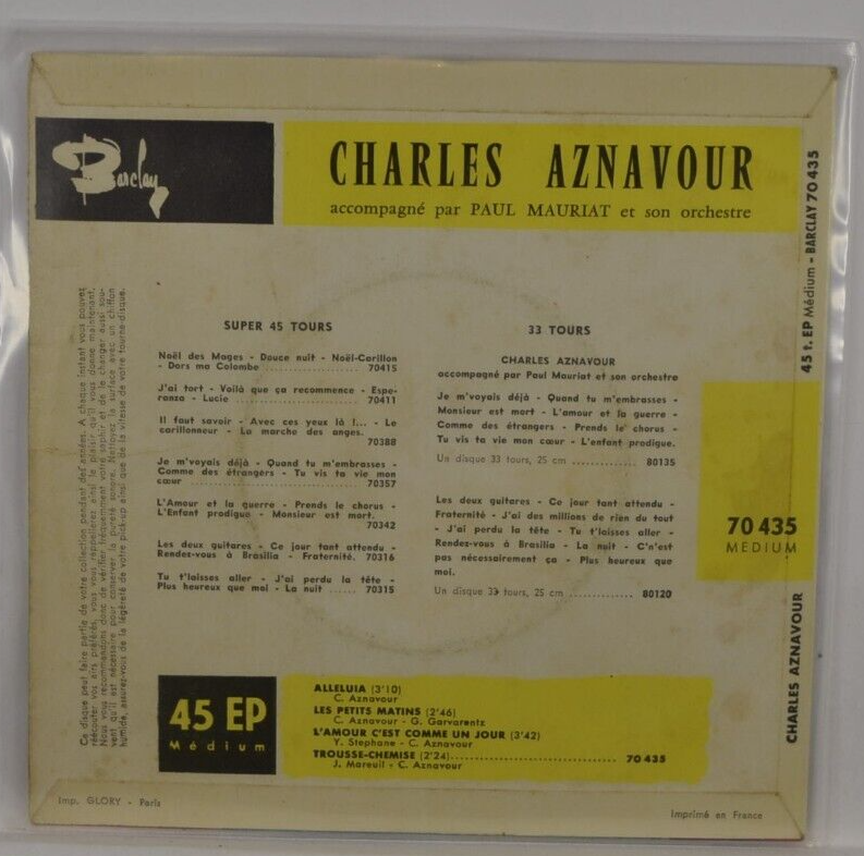 TITRE : disque vinyle 45 tours - alleluia charles aznavour