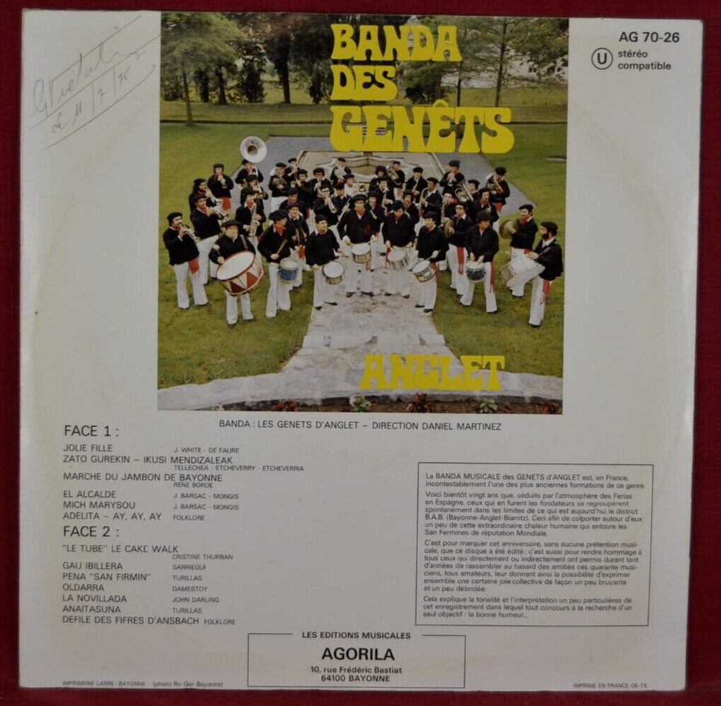 Titre : Banda des Genêts - Anglet - disque vinyle 33 tours