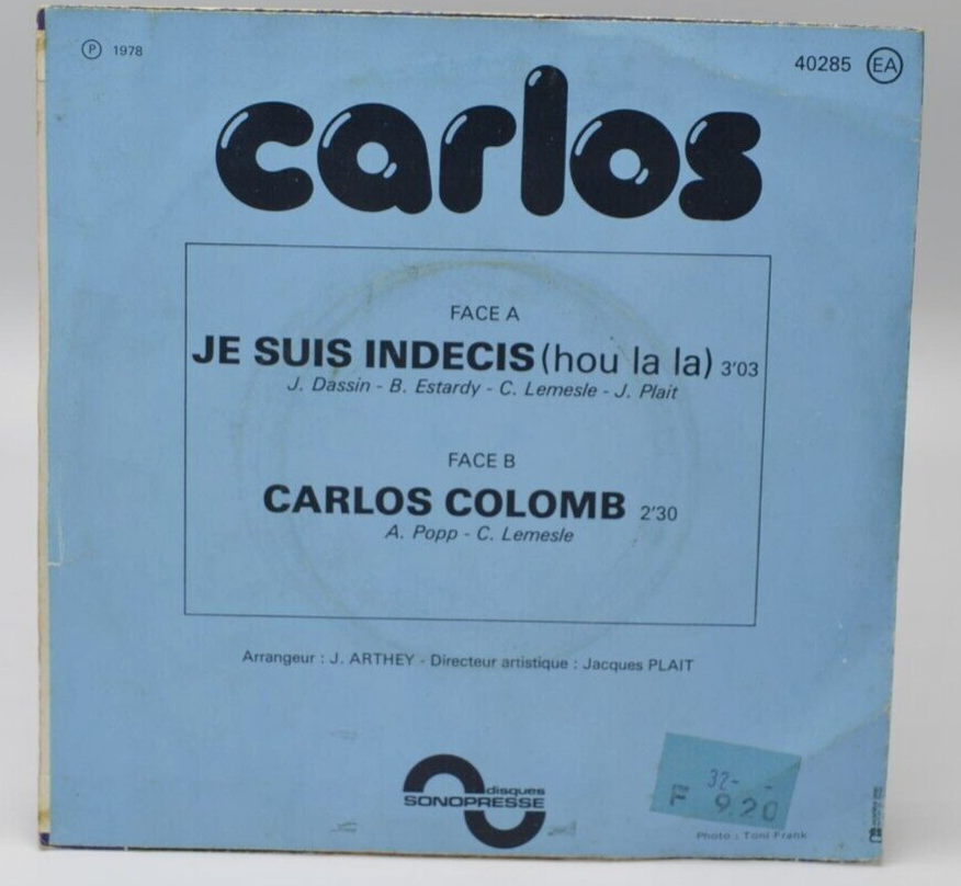 Je suis indécis - Carlos - disque vinyle 45 tours