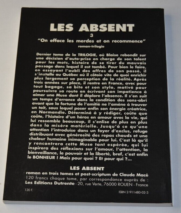 Les absent 3 " on efface les merdes et on recommence" - C. Macé - livre