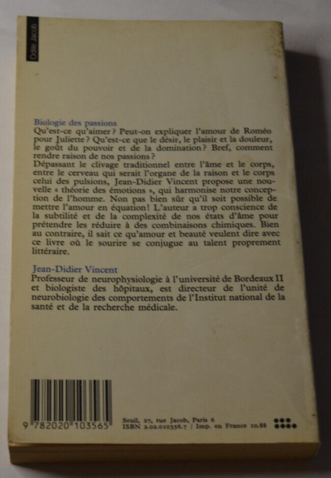 Titre : Biologie des passions - Jean-Didier Vincent - livre