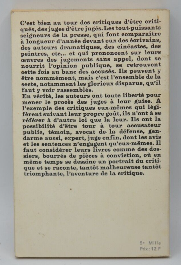 Titre : Les critiques littéraires Le procès des juges - Bernard Pivot - 1968 - livre
