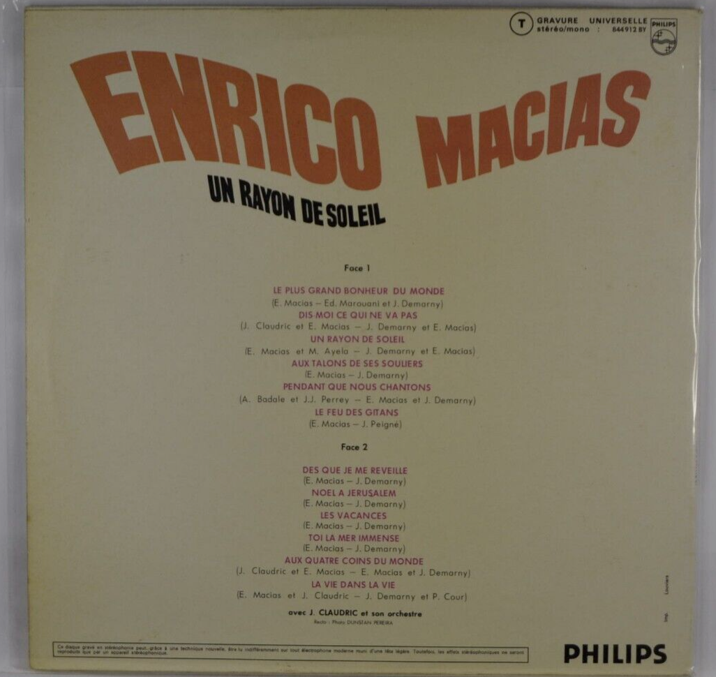 Titre : un rayon de soleil enrico macias - disque vinyle 33 tours