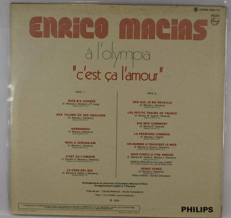 Titre : c'est ça l'amour enrico macias à l'olympia - disque vinyle 33 tours