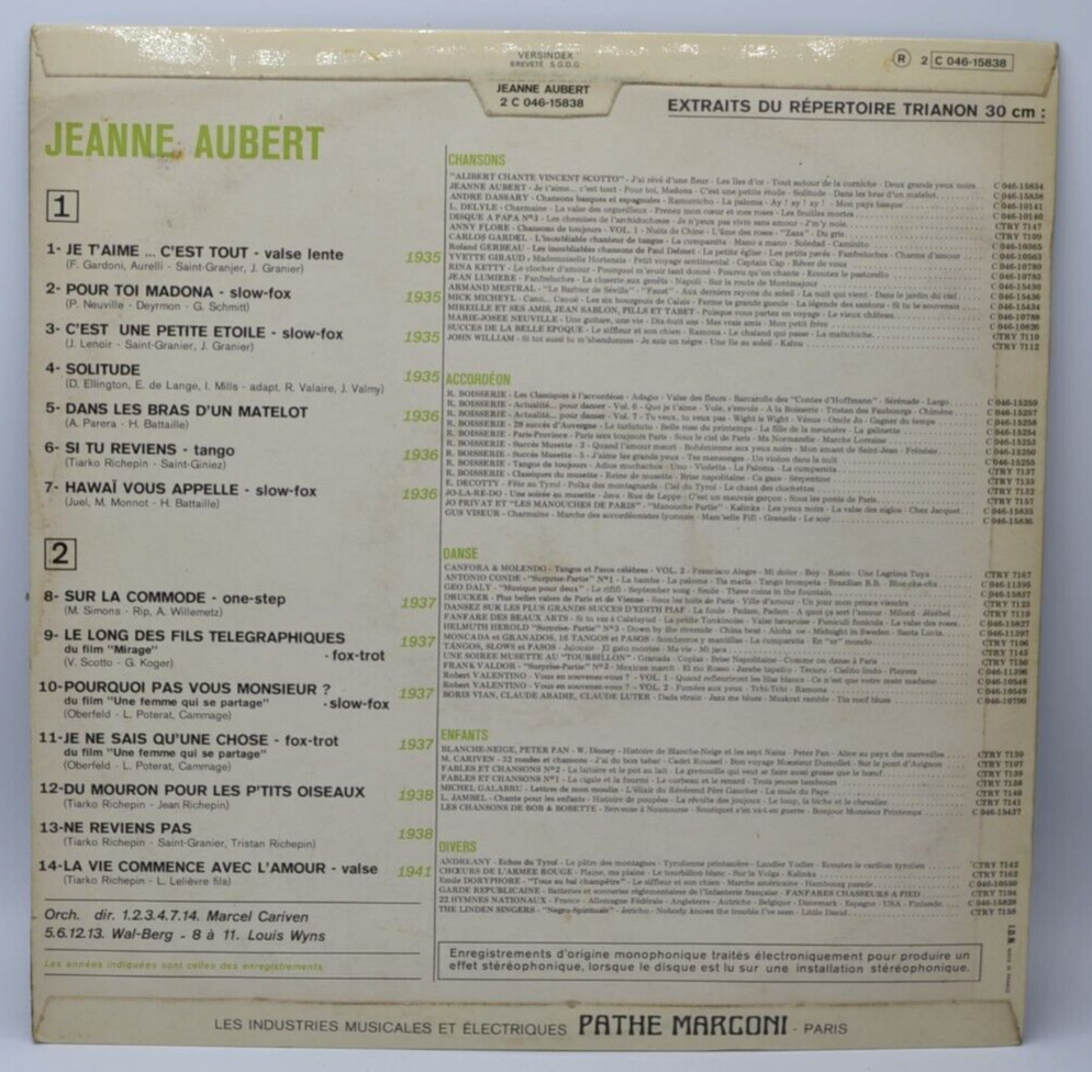 Titre : jeanne aubert je t'aime c'est tout - disque vinyle 33 tours