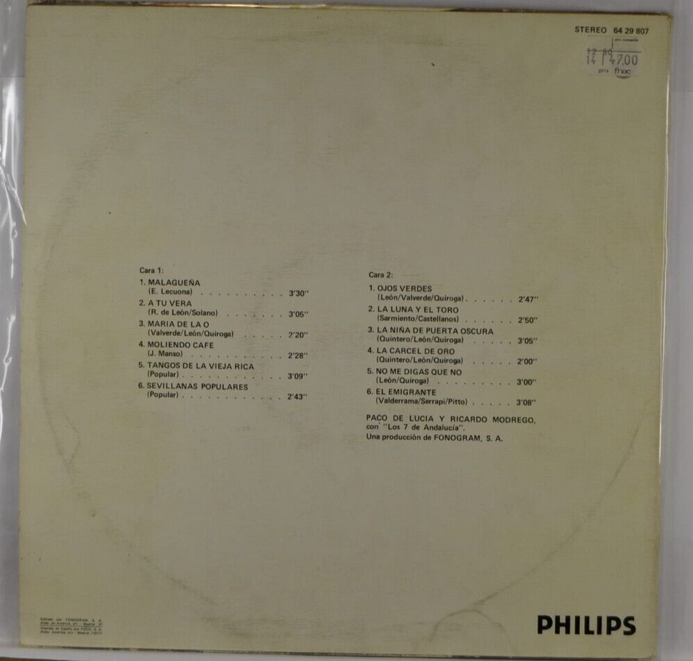 Titre : dos guitarras flamencas paco de lucia ricardo modrega - disque vinyle 33 tours