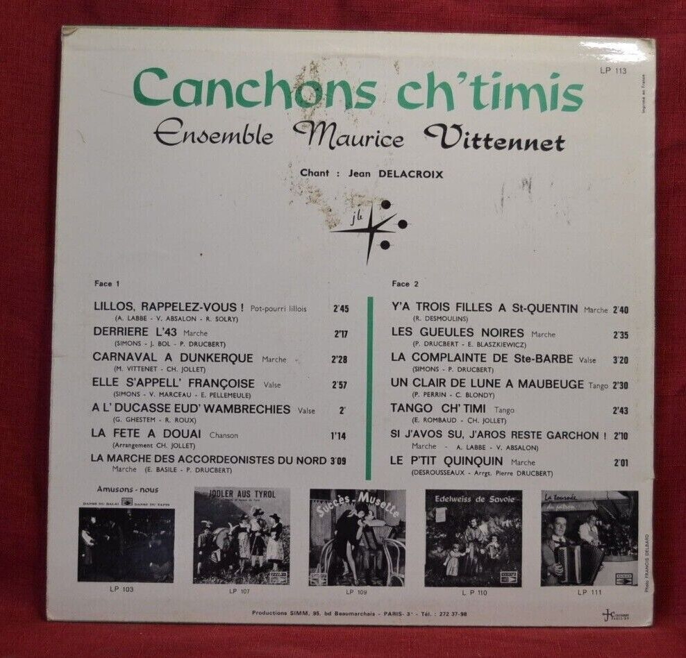 Titre : canchons ch'timis - disque vinyle 33 tours