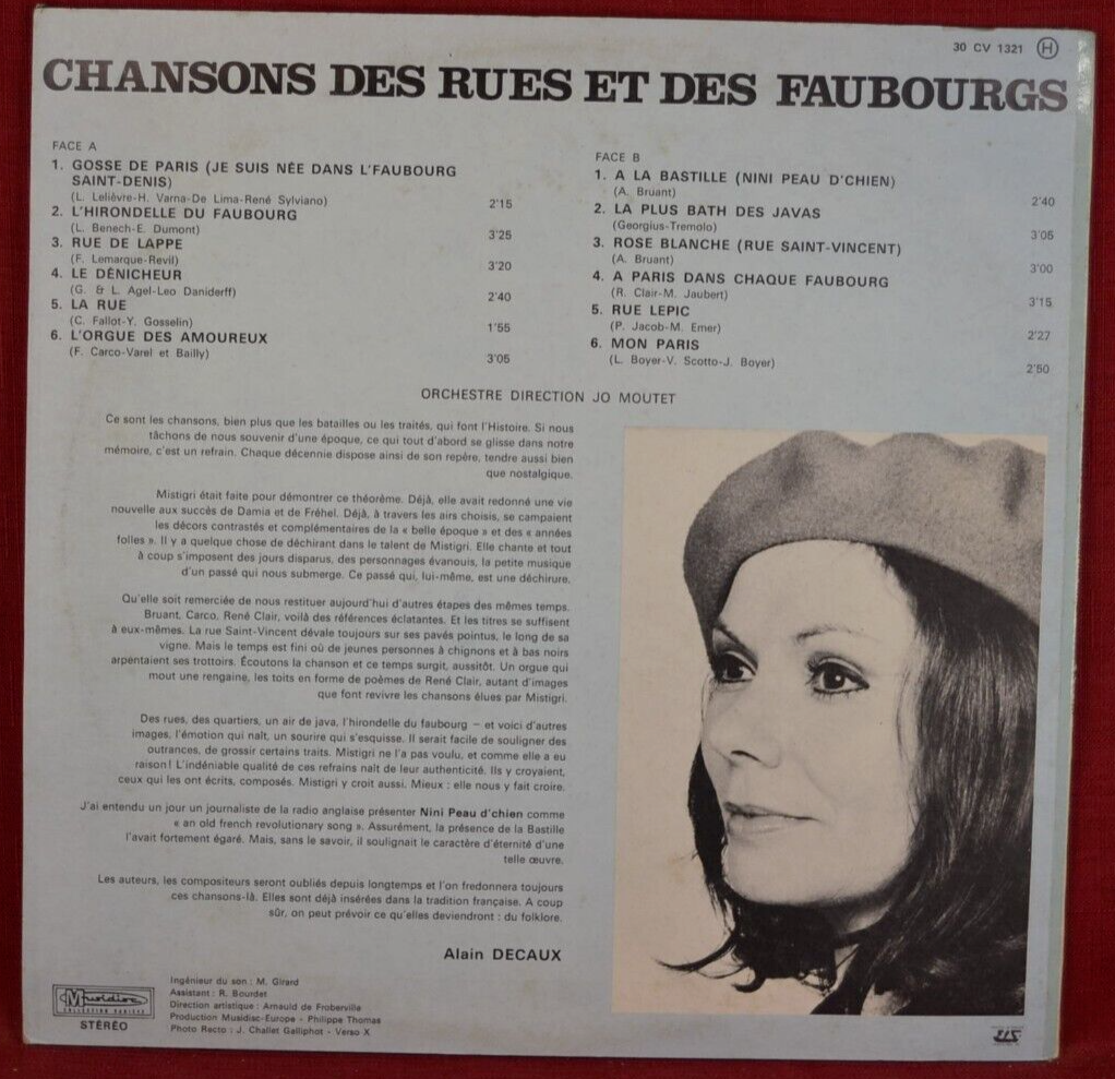 Titre : chansons des rues et des faubourgs par mistigri - disque vinyle 33 tours