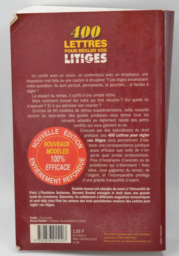 Titre : 400 Modèles De Lettres Pour Régler Vos Litiges - Zoubida Azzouz - 2000 - livre