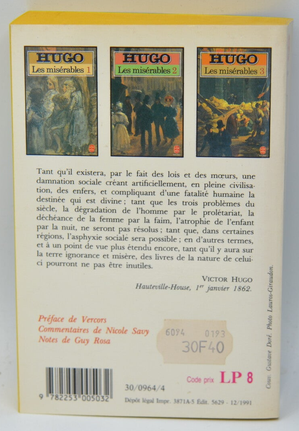 Titre : Les Misérables Tome 1 - Victor Hugo - 1991 - livre
