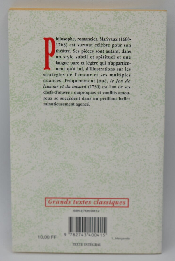Titre : Le jeu de l'amour et du hasard - Marivaux - 1994 - livre