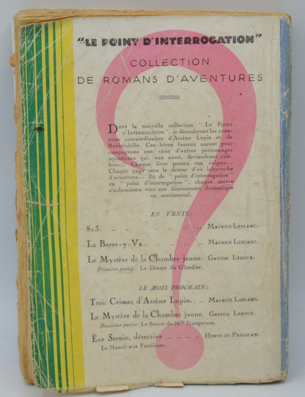 La barre-y-va Arsene Lupin Le Point D'interrogation - Maurice Leblanc - 1931 - livre