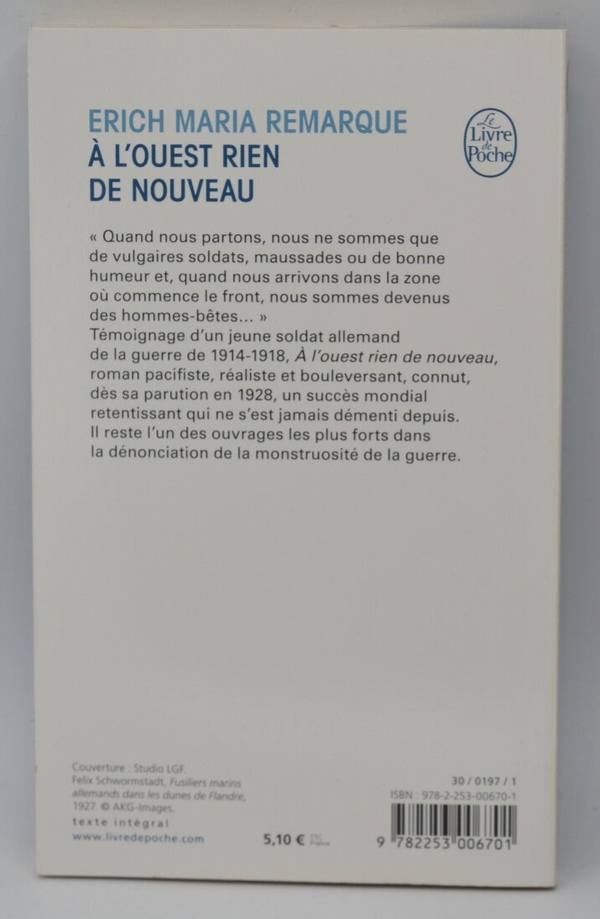 Titre : A l'ouest rien de nouveau - Erich Maria Remarque - 2013 - livre