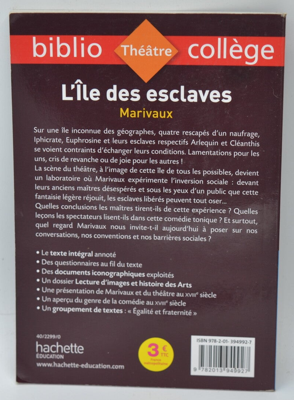 Titre : L'île des esclaves - Marivaux - 2020 - livre