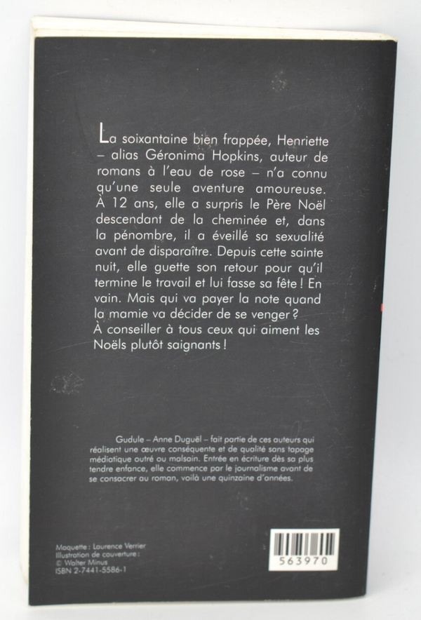 Cinquante ans qu'elle se ronge les ongles en pensant à cette lointaine visite : elle était alors petite fille, s'appelait Henriette Lemartyr et n'écrivait pas encore des romans à l'eau de rose. Jamais, au grand jamais, elle n'oubliera ses baisers, ses mains expertes et sa barbe blanche... L'insoutenable attente sera-t-elle comblée ? Géronima Hopkins finira-t-elle pour assouvir son fantasme : faire l'amour avec ce satané père Noël ? Ses amis Baby Golgotha et Nono l'y aideront-ils ? Un livre sans foi ni loi où l'humour noir (très noir) le dispute à la fantasmagorie la plus absurde.