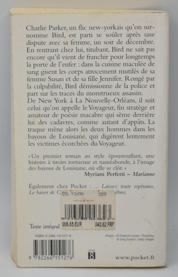 Charlie Parker, un flic new-yorkais qu'on surnomme Bird, est parti se soûler après une dispute avec sa femme, un soir de décembre. En rentrant chez lui, titubant, Bird ne sait pas encore qu'il vient de franchir pour longtemps la porte de l'enfer : dans la cuisine, maculée de sang, gisent les corps atrocement mutilés de sa femme Susan et de sa fille Jennifer. Rongé par la culpabilité, Bird démissionne de la police et part sur les traces du monstrueux assassin. De New York à La Nouvelle-Orléans, il suit celui qu'on appelle le Voyageur, fin stratège et amateur de poésie macabre qui sème derrière lui des cadavres, comme autant d'appâts. La traque mène alors les deux hommes dans les bayous de Louisiane, qui digèrent lentement les victimes écorchées du Voyageur.