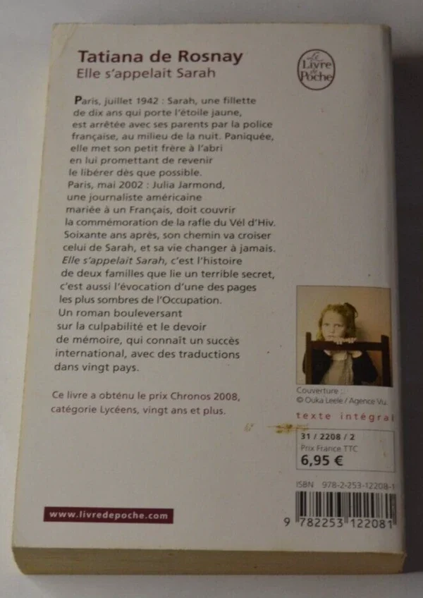 Titre : Elle s'appelait Sarah - Tatiana de Rosnay - 2009 - livre