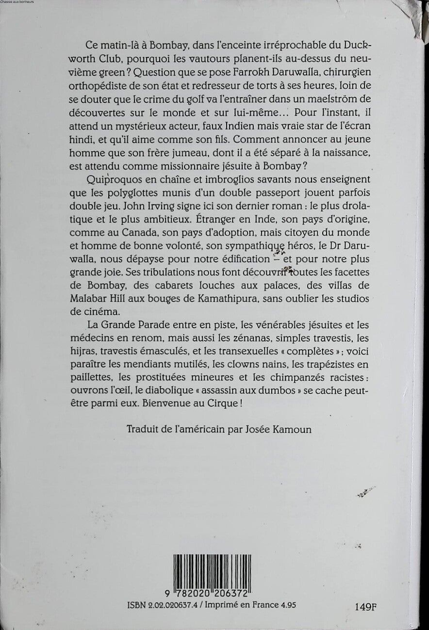 Quiproquos en chaîne et imbroglios savants nous enseignent que les polyglottes munis d’un double passeport jouent parfois double jeu. John Irving signe ici son dernier roman : le plus drolatique et le plus ambitieux. Étranger en Inde, son pays d’origine, comme au Canada, son pays d’adoption, mais citoyen du monde et homme de bonne volonté, son sympathique héros, le Dr Daruwalla, nous dépayse pour notre édification – et pour notre plus grande joie. Ses tribulations nous font découvrir toutes les facettes de Bombay, des cabarets louches aux palaces, des villas de Malabar Hill aux bouges de Kamathipura, sans oublier les studios de cinéma.