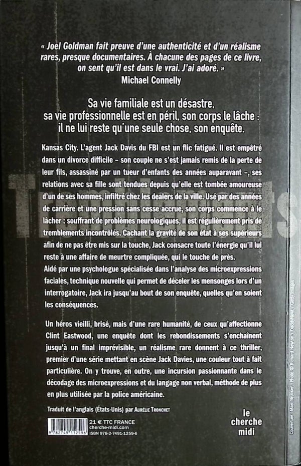 Un héros vieilli, brisé, mais d'une rare humanité, de ceux qu'affectionne Clint Eastwood, une enquête dont les rebondissements s'enchaînent jusqu'à un final imprévisible, un réalisme rare donnent à ce thriller, premier d'une série mettant en scène Jack Davies, une couleur tout à fait particulière. On y trouve, en outre, une incursion passionnante dans le décodage des microexpressions et du langage non verbal, méthode de plus en plus employée par la police américaine.