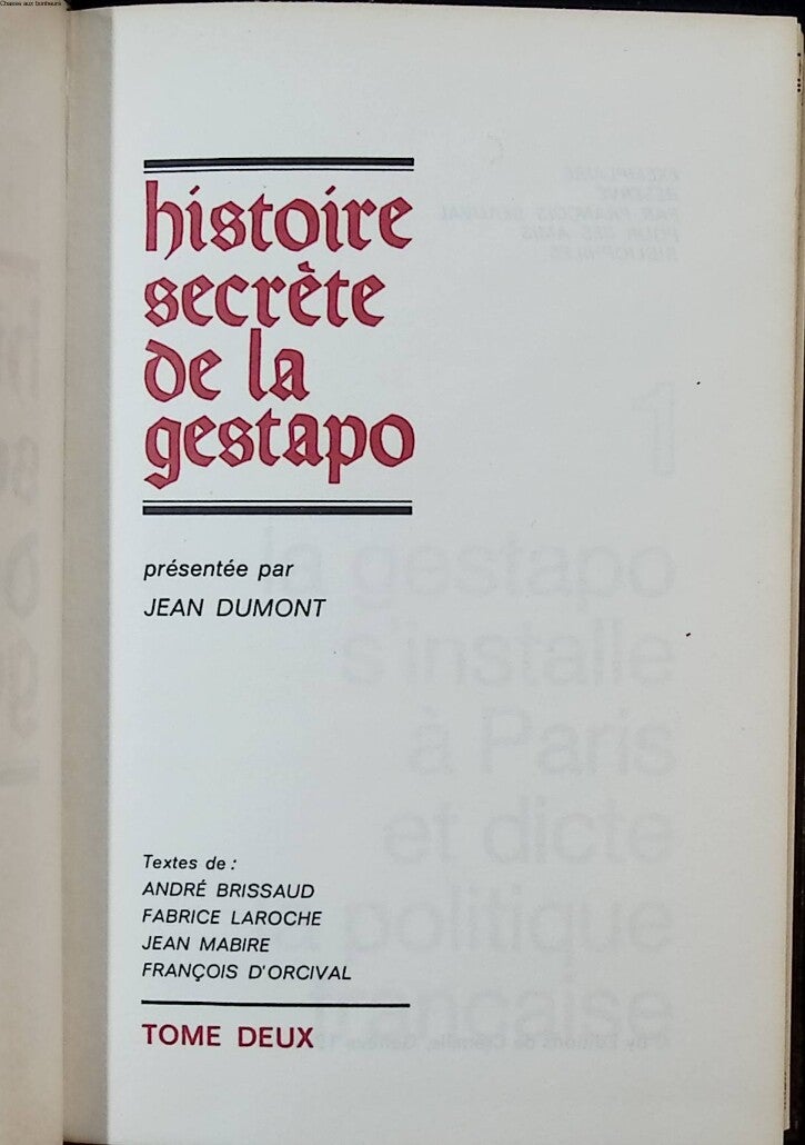 Titre : Histoire de la gestapo tome 2 - Jean Dumont - 1971 - livre