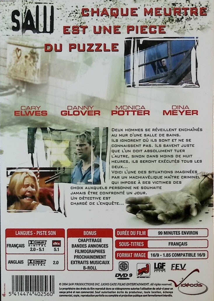 Deux hommes se réveillent enchaînés au mur d’une salle de bains. Ils ignorent où ils sont et ne se connaissent pas. Ils savent juste que l’un des deux doit absolument tuer l’autre d’ici huit heures, sinon ils seront abattus tous les deux… Les victimes sont prêtes à tout pour s’échapper mais, pour réunir toutes les pièces de ce terrifiant puzzle, il faudra jouer selon les règles qu’un génie du crime leur impose…