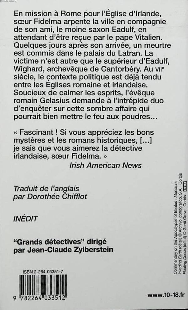 En mission à Rome, sœur Fidelma et son ami, le moine Eadulf, sont à peine remis du voyage que l'archevêque de Cantorbéry s'effondre, assassiné. Un meurtre que l'intrépide duo est tenu de tirer au clair au plus vite. Car dans un contexte politique déjà tendu entre les Églises romaine et irlandaise, cette sombre affaire promet de mettre le feu aux poudres...