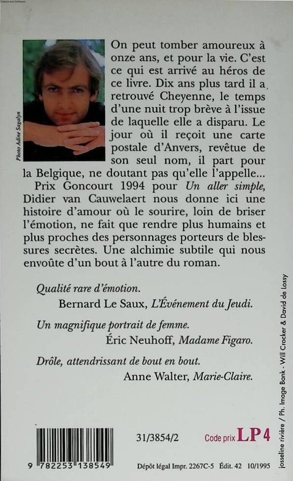 On peut tomber amoureux à onze ans, et pour la vie. C’est ce qui est arrivé au héros de ce livre. Dix ans plus tard il a retrouvé Cheyenne, le temps d’une nuit trop brève à l’issue de laquelle elle a disparu. Le jour où il reçoit une carte postale d’Anvers, revêtue de son seul nom, il part pour la Belgique, ne doutant pas qu’elle l’appelle…