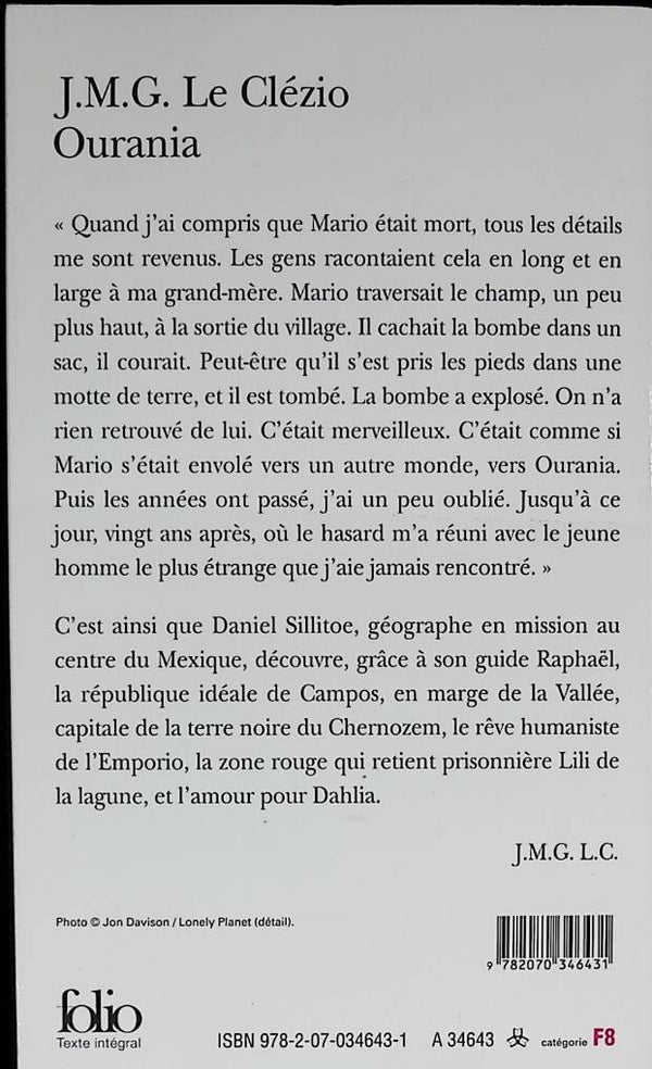 ""Quand j'ai compris que Mario était mort, tous les détails me sont revenus. Les gens racontaient cela en long et en large à ma grand-mère. Mario traversait le champ, un peu plus haut, à la sortie du village. Il cachait la bombe dans un sac, il courait. Peut-être qu'il s'est pris les pieds dans une motte de terre, et il est tombé. La bombe a explosé. On n'a rien retrouvé de lui. C'était merveilleux. C'était comme si Mario s'était envolé vers un autre monde, vers Ourania. Puis les années ont passé, j'ai un peu oublié. Jusqu'à ce jour, vingt ans après, où le hasard m'a réuni avec le jeune homme le plus étrange que j'aie jamais rencontré." C'est ainsi que Daniel Sillitoe, géographe en mission au centre du Mexique, découvre, grâce à son guide Raphaël, la république idéale de Campos, en marge de la Vallée, capitale de la terre noire du Chernozem, le rêve humaniste de l'Emporio, la zone rouge qui retient prisonnière Lili de la lagune, et l'amour pour Dahlia." J.M.G. Le Clézio.
