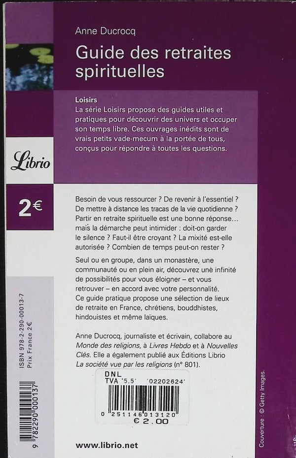 Titre : Guide des retraites spirituelles - Les bonnes adresses pour se ressourcer - Ducrocq Anne - 2007 - livre