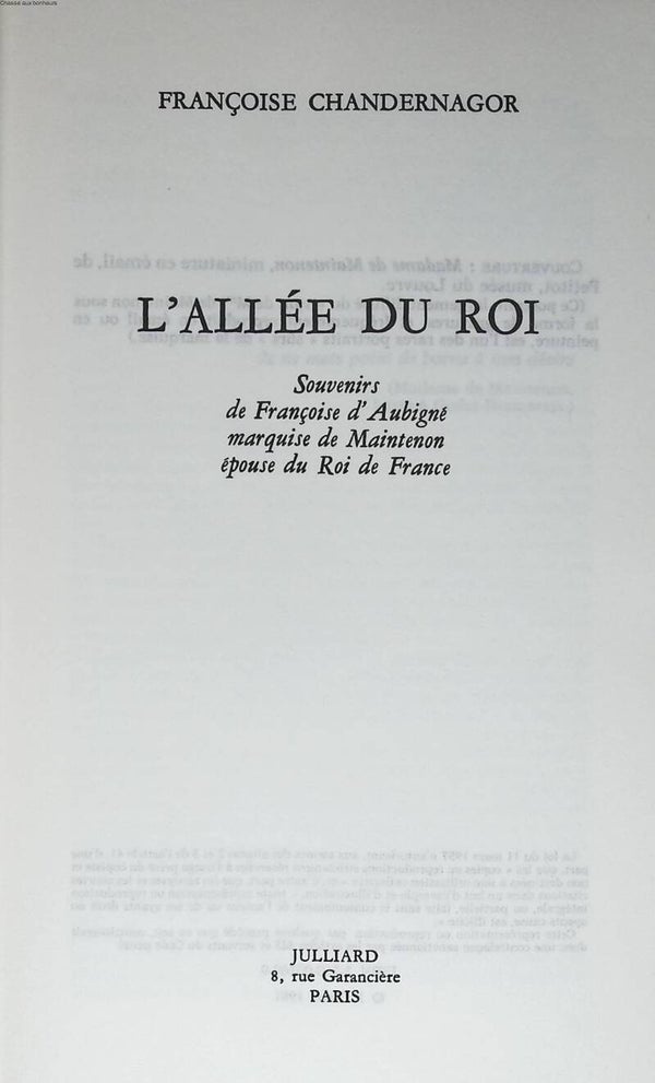 Titre : L'Allée du roi - Souvenirs de Françoise d'Aubigné, marquise de Maintenon, épouse du roi de France - Françoise Chandernagor - 1981 - livre