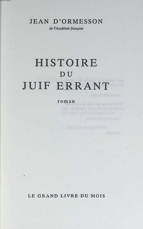 Titre : Histoire du juif errant - Jean D'ormesson - 1990 - livre