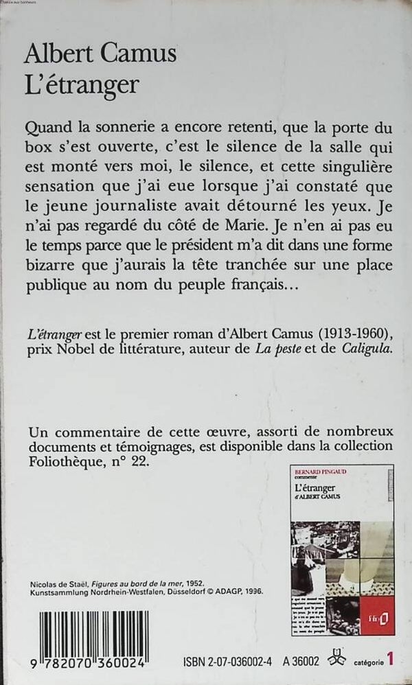 Titre : L'étranger - Albert Camus - 1996 - livre