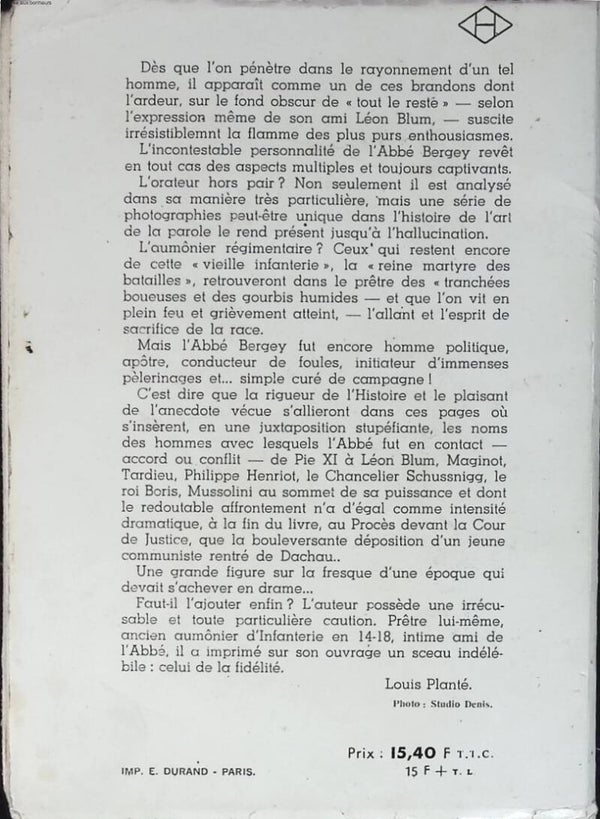 Titre : Un grand orateur L'abbé Bergey - B. Bordachar - 1963 - livre