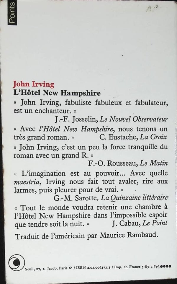 Titre : L'hôtel New Hampshire - Irving John - 1983 - livre