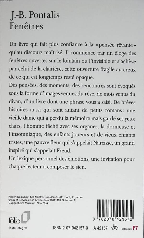 Titre : Fenêtres - Jean-Bertrand Pontalis - 2002 - livre