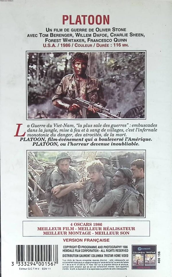 TITRE : Platoon - Charlie Sheen - cassette vidéo vhs K7