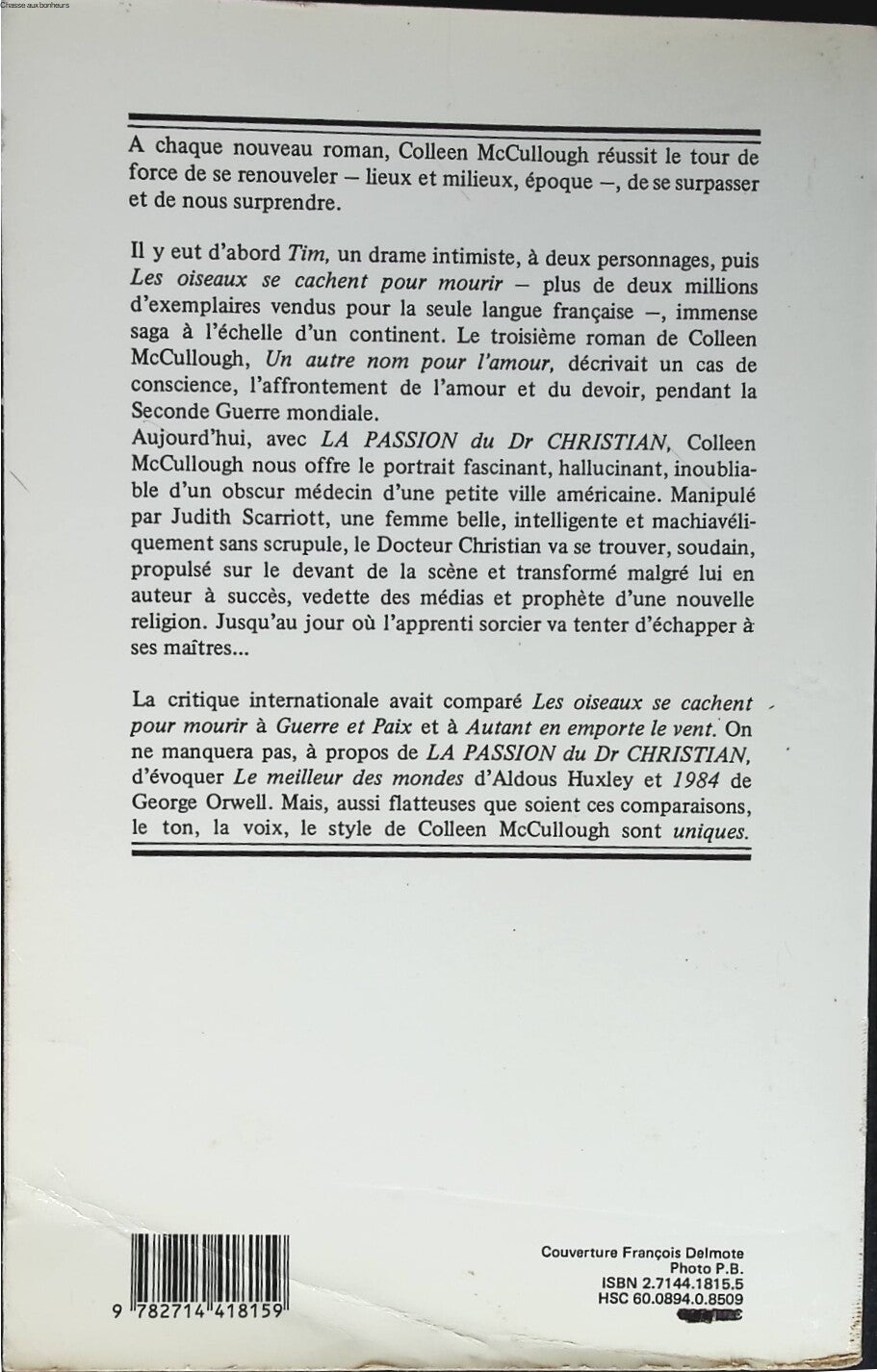 Titre : La Passion du Dr Christian - Colleen McCullough - 1985 - livre