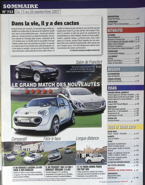 Le grand match des nouveautés - L'auto journal - n° 733 - 2007 - revue magazine - voiture