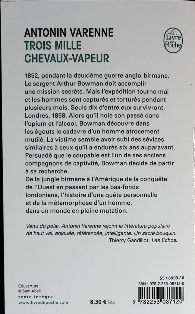 Titre : Trois mille chevaux-vapeur - Antonin Varenne - 2016 - livre