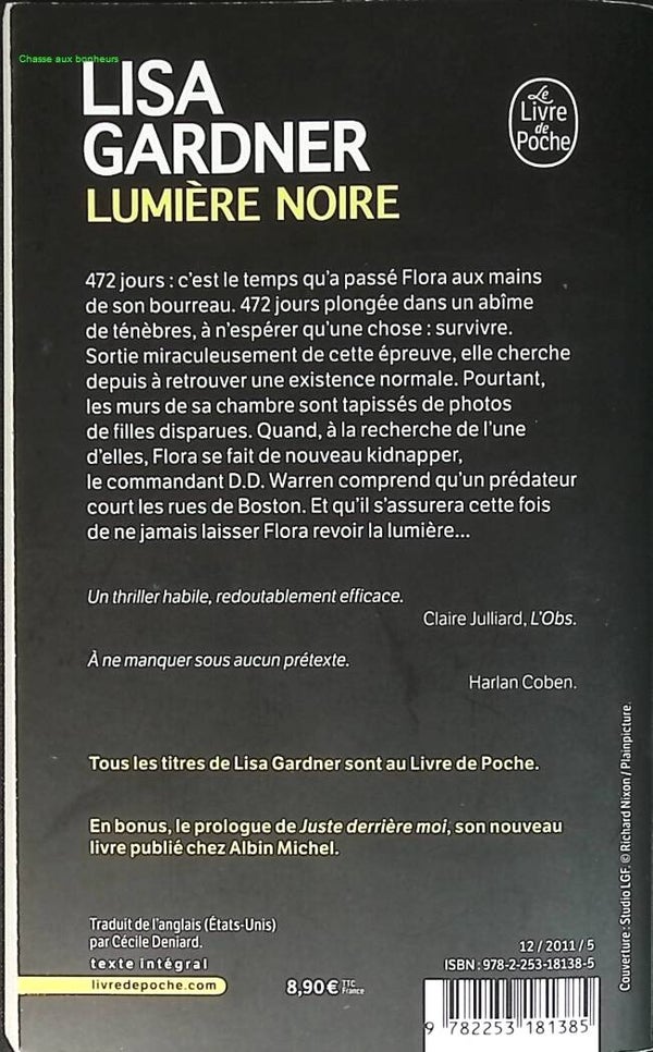 Sortie miraculeusement de cette épreuve, elle cherche depuis à retrouver une existence normale. Pourtant, les murs de sa chambre sont tapissés de photos de filles disparues. Quand, à la recherche de l’une d’elles, Flora se fait de nouveau kidnapper, le commandant D.D. Warren comprend qu’un prédateur court les rues de Boston, qui s’assurera cette fois que Flora ne revoie jamais la lumière…