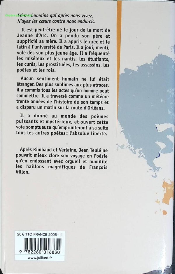 Après Arthur Rimbaud et Paul Verlaine, Jean Teulé se glisse dans la peau de François Villon pour restituer l'existence du premier des poètes français modernes, maître de la ballade, génie écorché à nul autre pareil, mais aussi mauvais garçon ayant assidûment fréquenté l'univers des cachots.