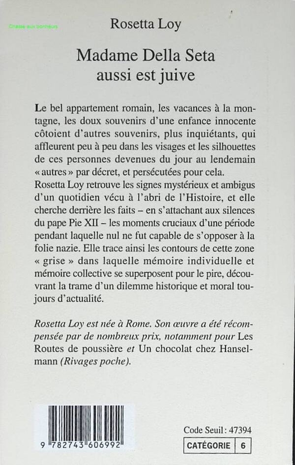 Titre : Madame Della Seta aussi est juive - Rosetta Loy - livre