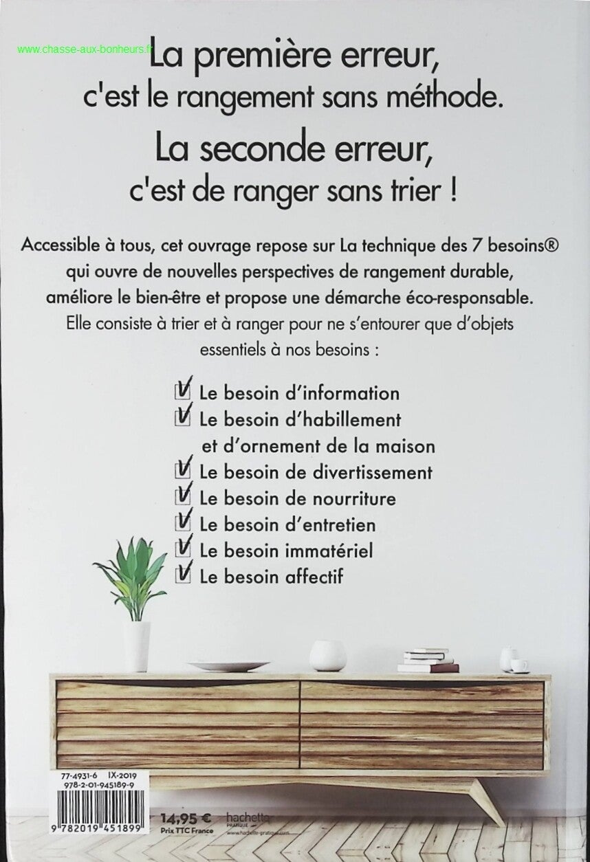 Accessible à tous, cet ouvrage repose sur La technique des 7 besoins® qui ouvre de nouvelles perspectives de rangement durable, améliore le bien-être et propose une démarche éco-responsable.