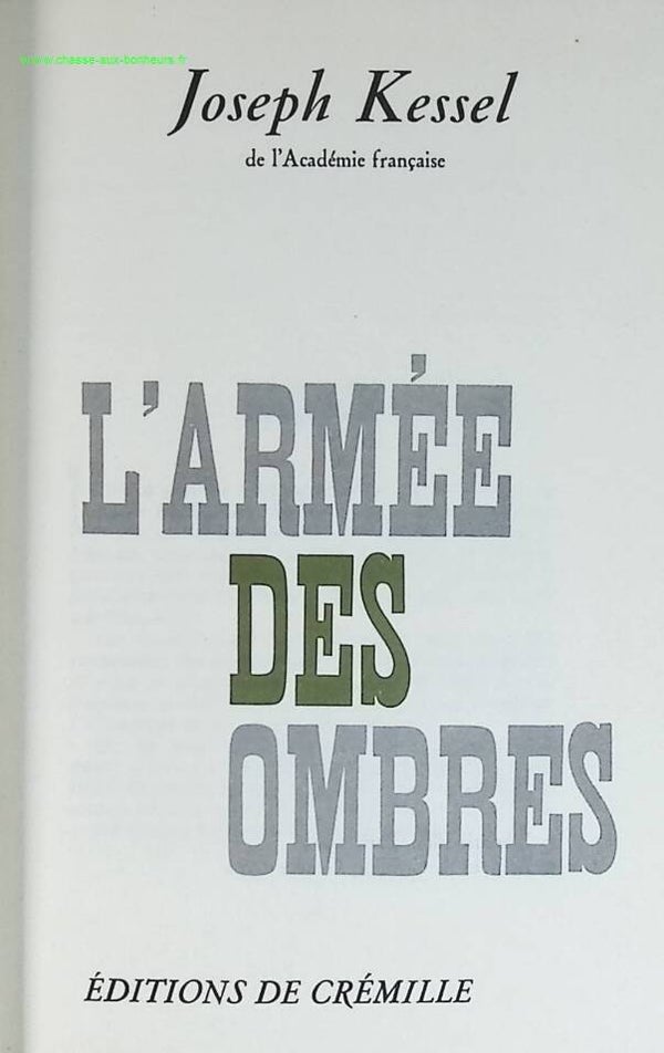 Titre : L'armée des ombres - Joseph Kessel - livre