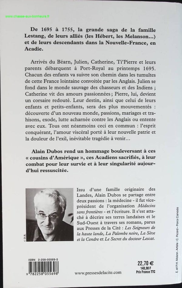 De 1695 à 1755, la grande saga de la famille Lestang, de leurs alliés (les Hébert, les Melanson...) et de leurs descendants dans la Nouvelle-France, en Acadie.