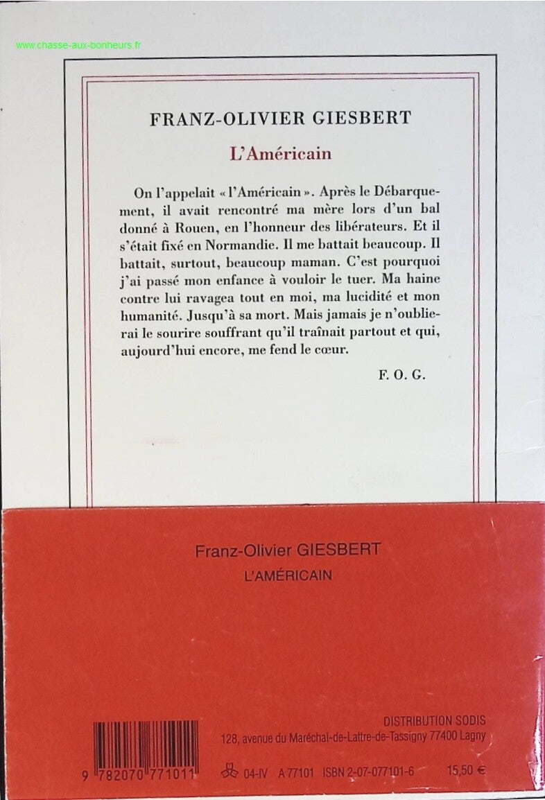 "On l'appelait "l'Américain". Après le Débarquement, il avait rencontré ma mère lors d'un bal donné à Rouen, en l'honneur des libérateurs. Et il s'était fixé en Normandie. Il me battait beaucoup. Il battait, surtout, beaucoup maman. C'est pourquoi j'ai passé mon enfance à vouloir le tuer. Ma haine contre lui ravagea tout en moi, ma lucidité et mon humanité. Jusqu'à sa mort. Mais jamais je n'oublierai le sourire souffrant qu'il traînait partout et qui, aujourd'hui encore, me fend le coeur." Franz-Olivier Giesbert.