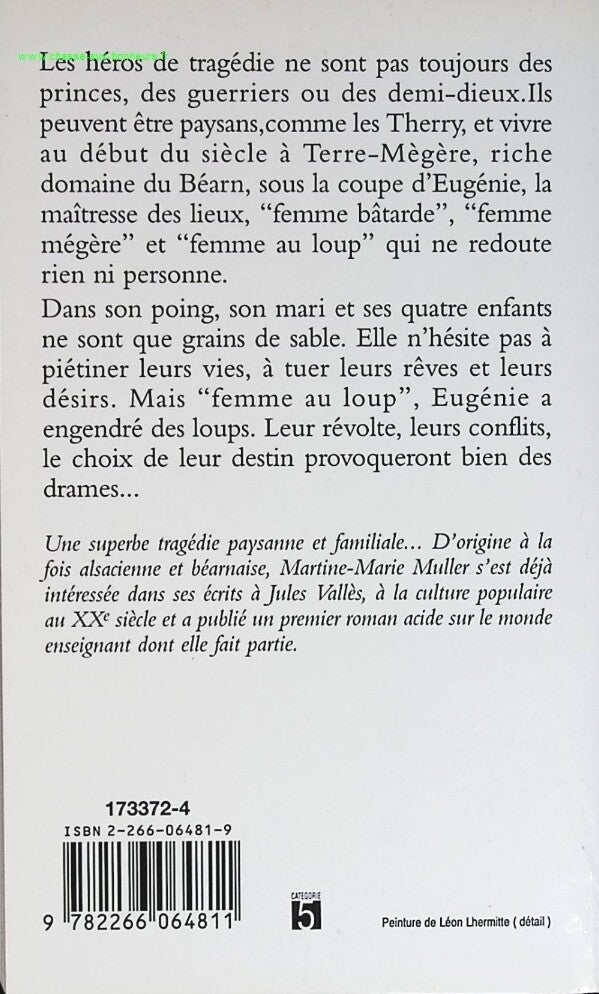 Les héros de tragédie ne sont pas toujours des princes, des guerriers ou des demi-dieux. Ils peuvent être paysans, comme les Therry, et vivre au début du siècle à Terre-Mègère, riche domaine du Béarn, sous la coupe d'Eugénie, la maîtresse des lieux, "femme bâtarde", "femme mégère" et "femme au loup" qui ne redoute rien ni personne. Dans son poing, son mari et ses quatre enfants ne sont que grains de sable. Elle n'hésite pas à piétiner leurs vies, à tuer leurs rêves et leurs désirs. Mais "femme au loup", Eugénie a engendré des loups. Leur révolte, leurs conflits, le choix de leur destin provoqueront bien des drames...