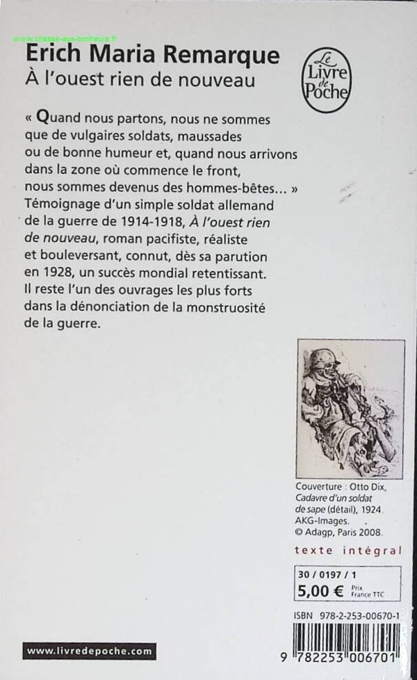 Titre : A l'ouest rien de nouveau - Erich Maria Remarque - livre